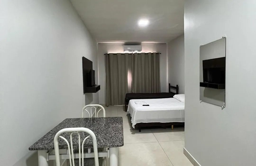 El Apartamento 106 - Suíte com ar condicionado Patos de Minas se encuentra a poco más de 25 minutos a pie de Unipam, ofreciendo acceso a numerosos lugares de interés de la zona. Los huéspedes pueden disfrutar del Wi-Fi.